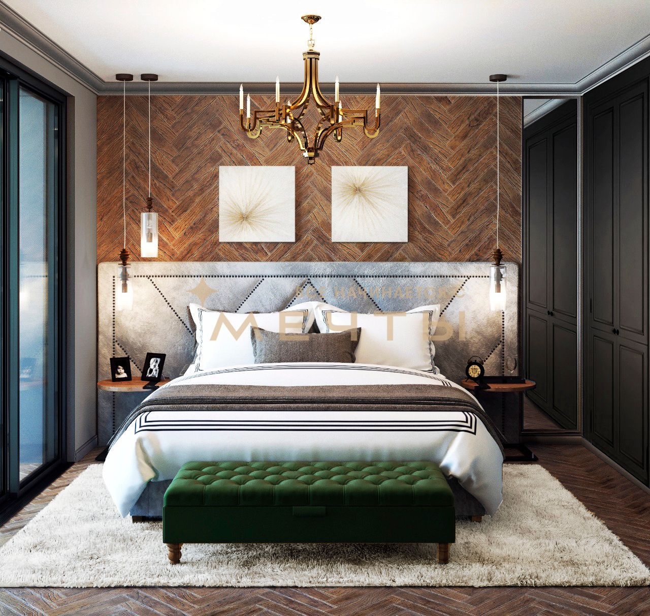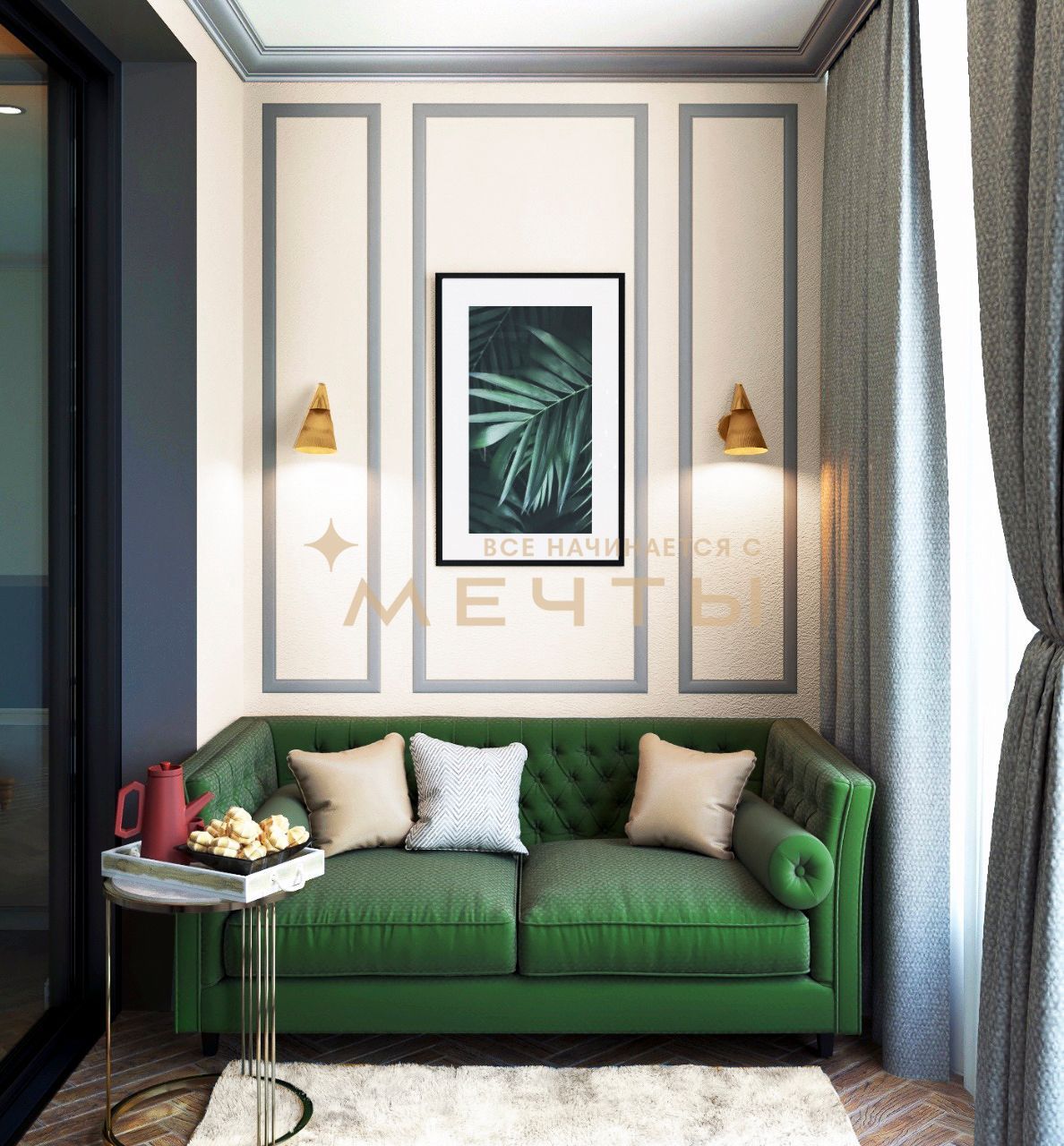 В стоимость входит все, что есть на визуализациях: качественный ремонт, мебель, техника, аксессуары и текстиль.
