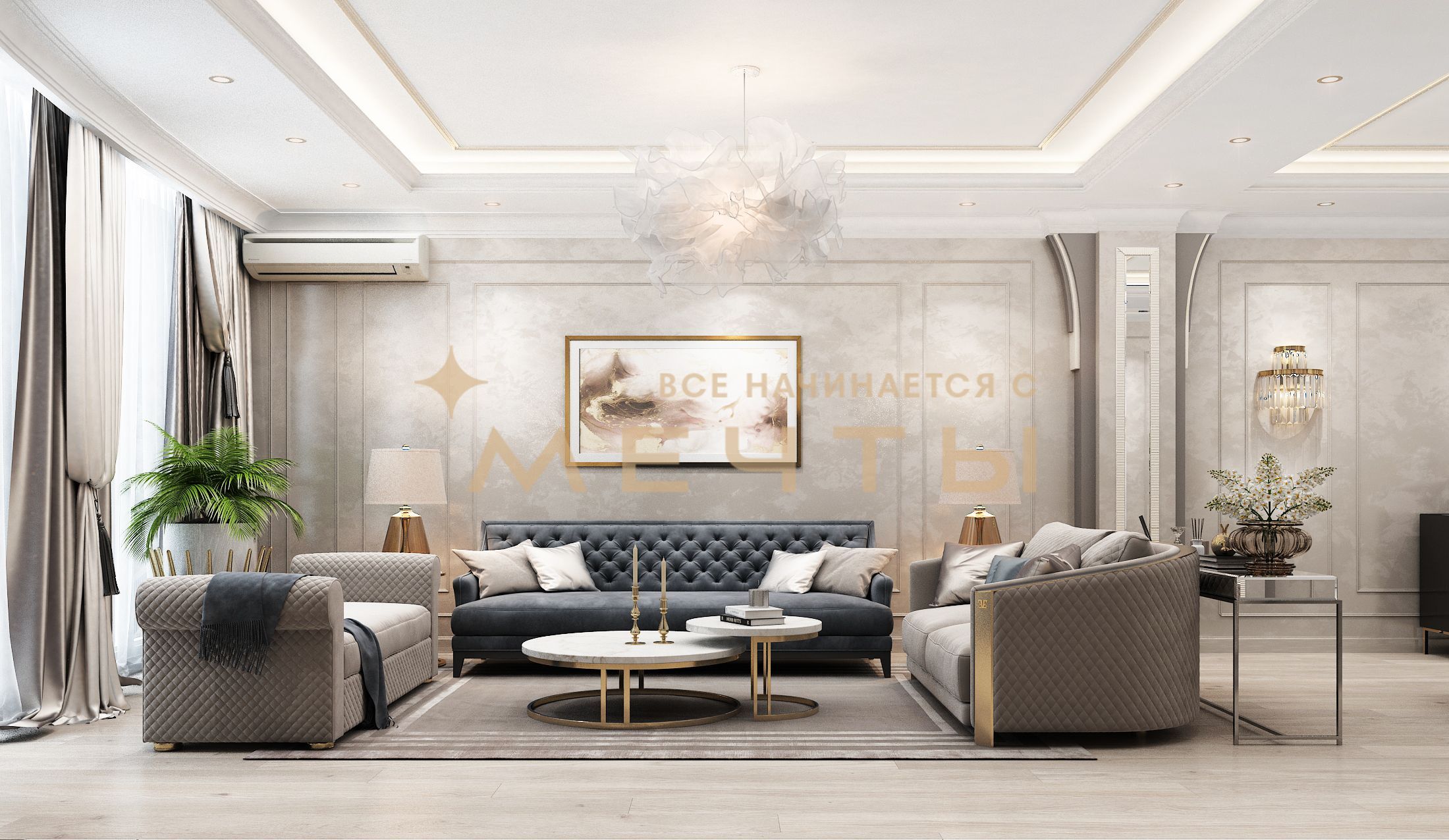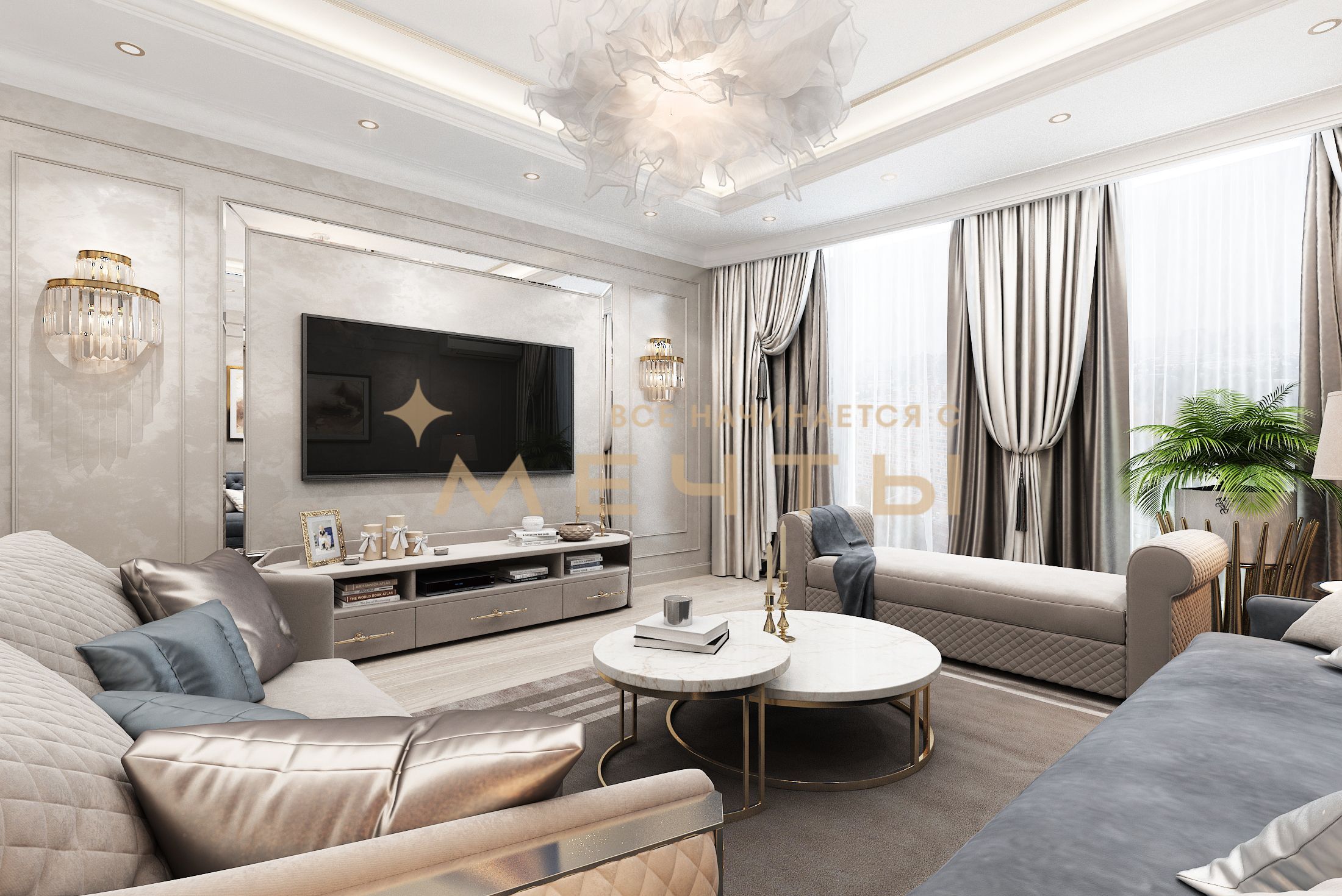 Квартира продается с разработанным дизайн-проектом и ремонтом. В стоимость входит все, что есть на визуализациях: качественный ремонт, мебель, техника, аксессуары и текстиль. Возможно внесение изменений по вашим пожеланиям.