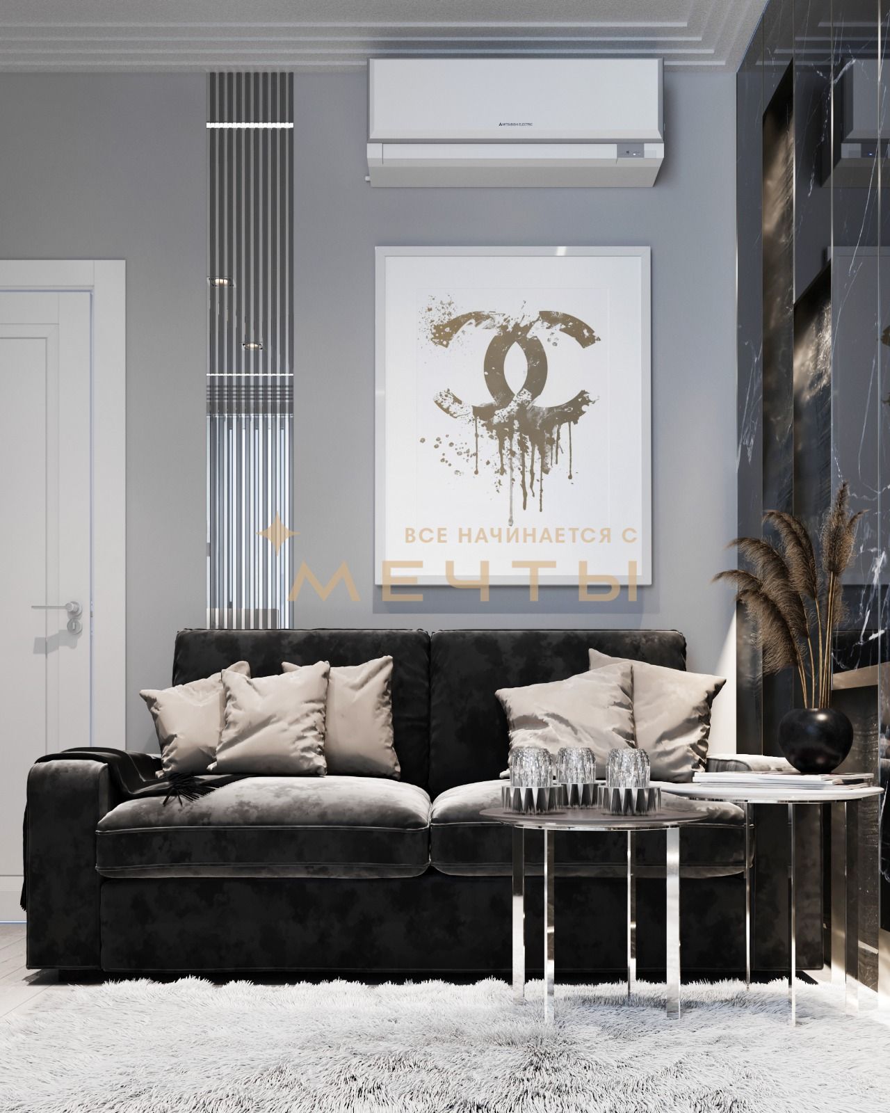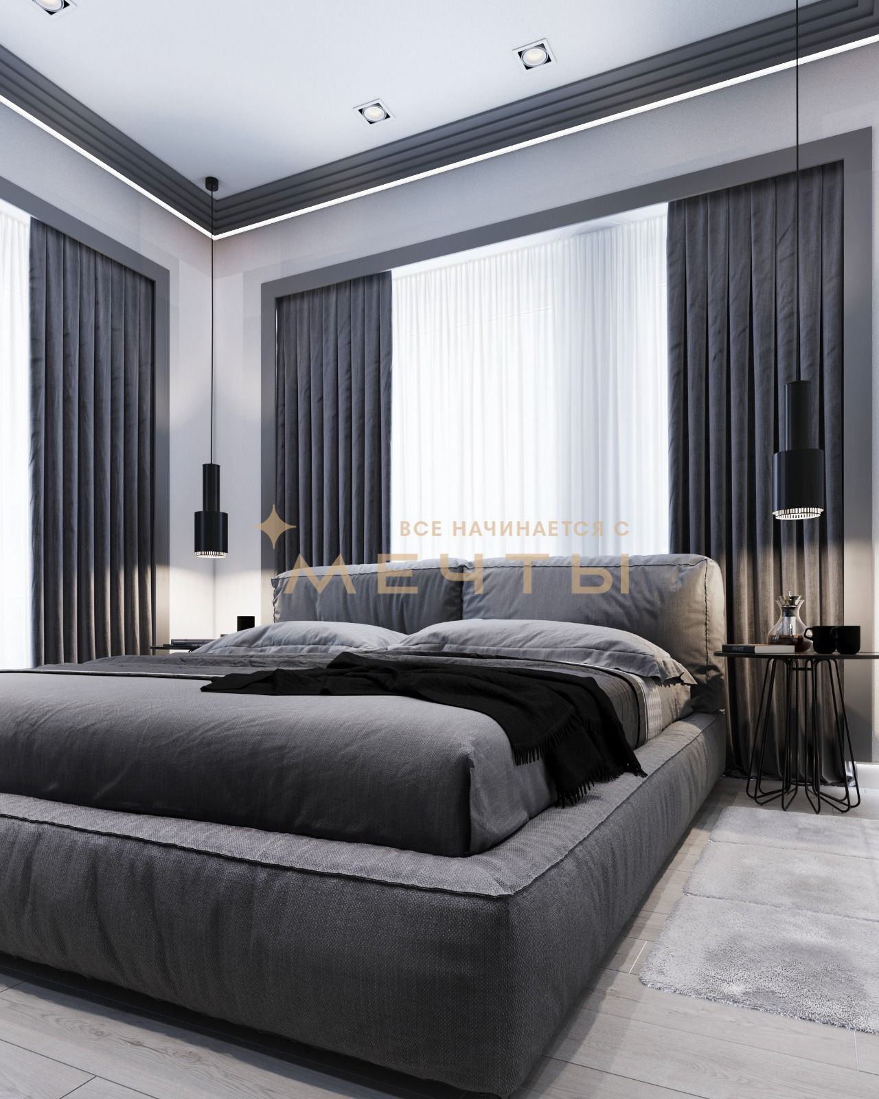 В стоимость входит все, что есть на визуализациях: качественный ремонт, мебель, техника, аксессуары и текстиль.