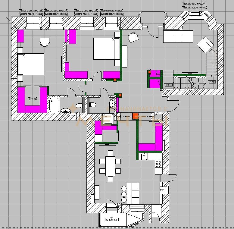 Общая площадь: 184,55 кв.м, комнаты изoлиpованные.