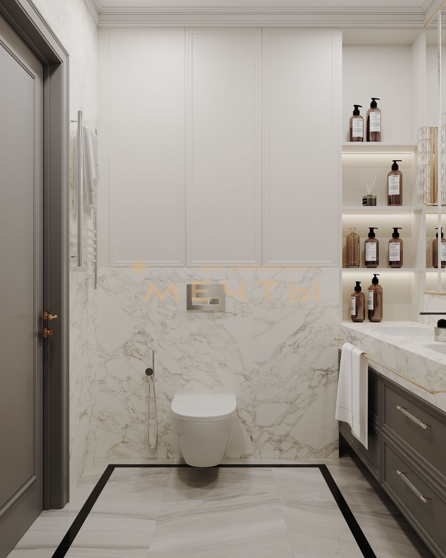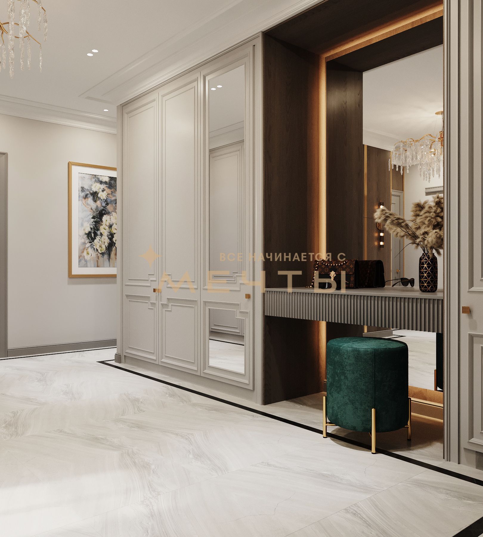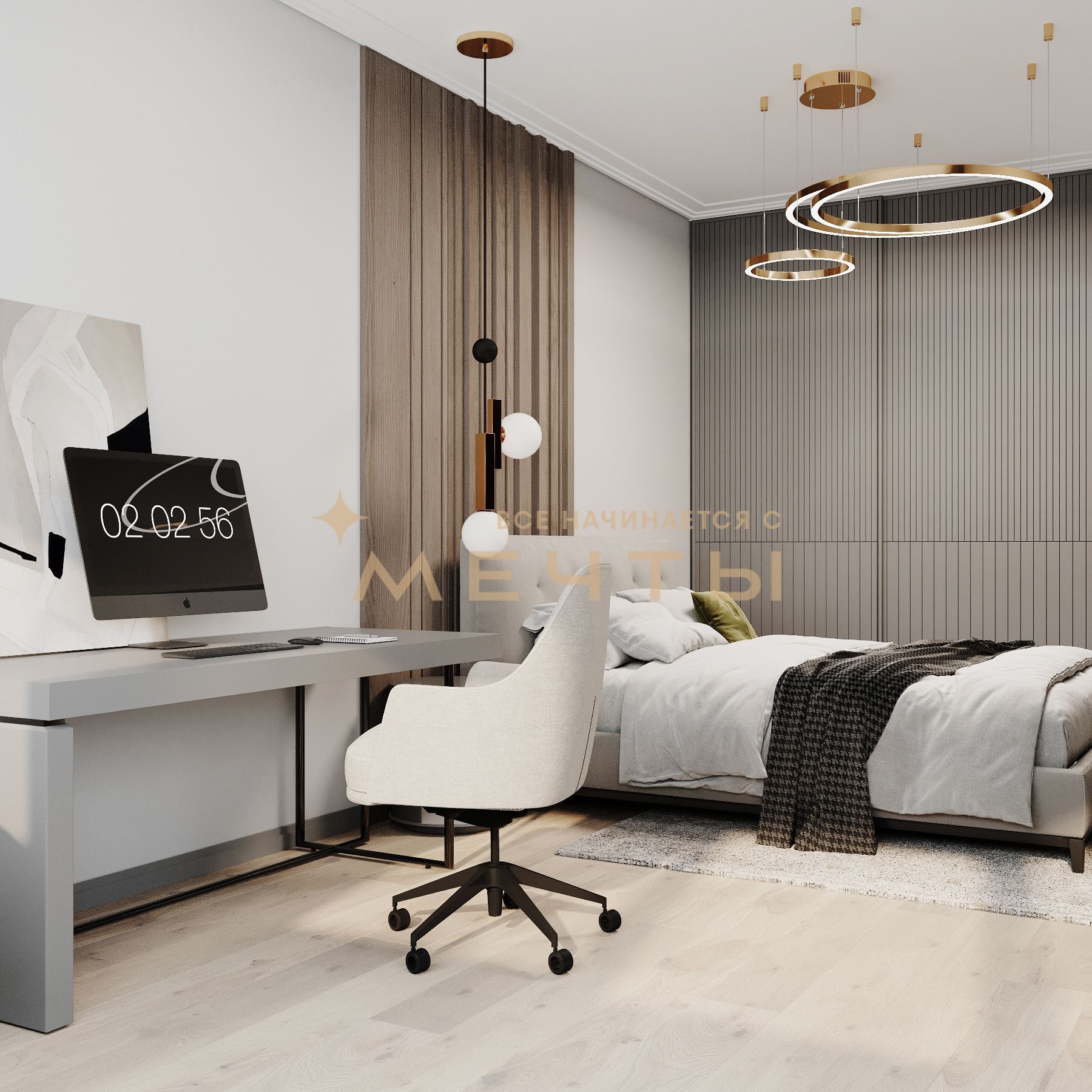 В стоимость входит все, что есть на визуализациях: качественный ремонт, мебель, техника, аксессуары и текстиль.
