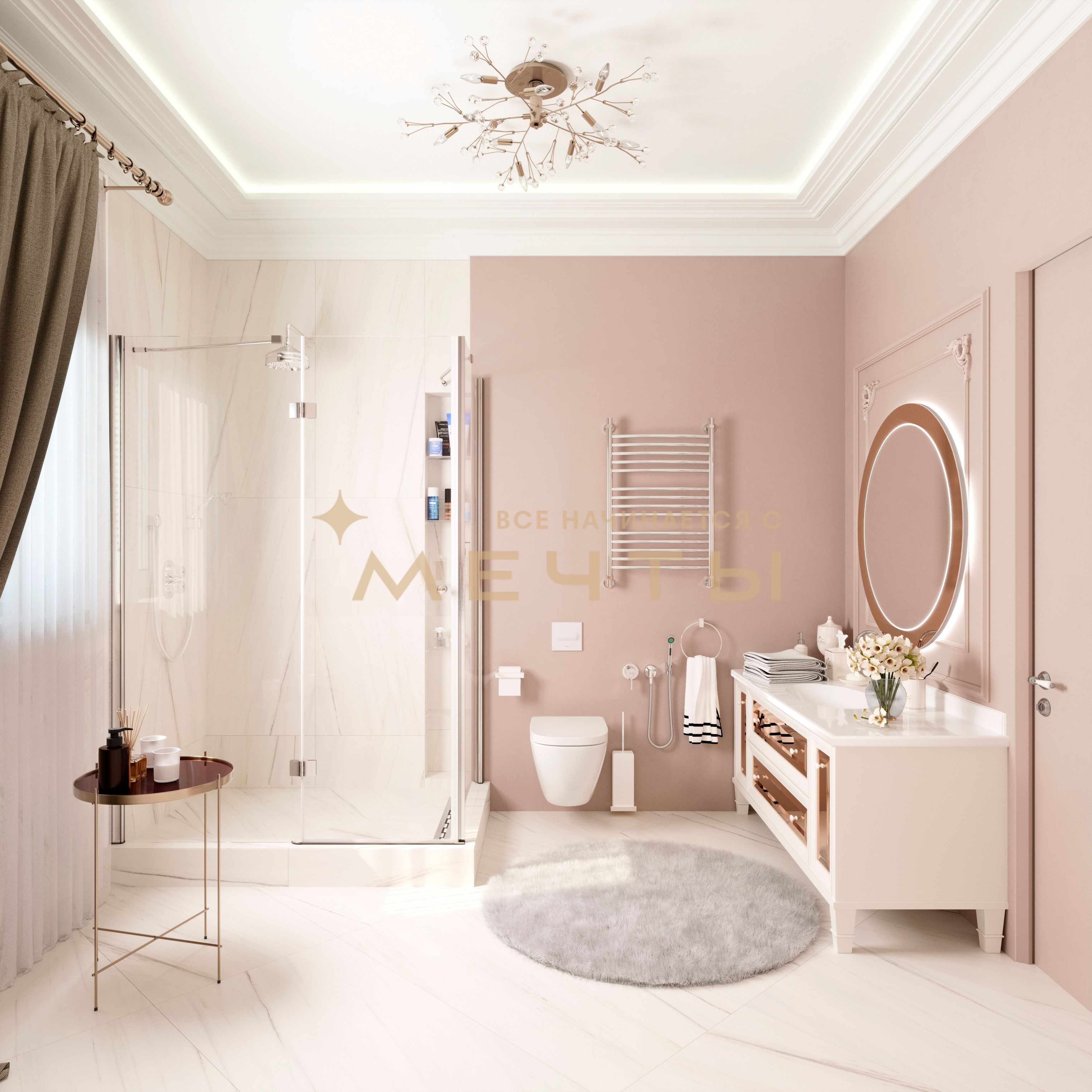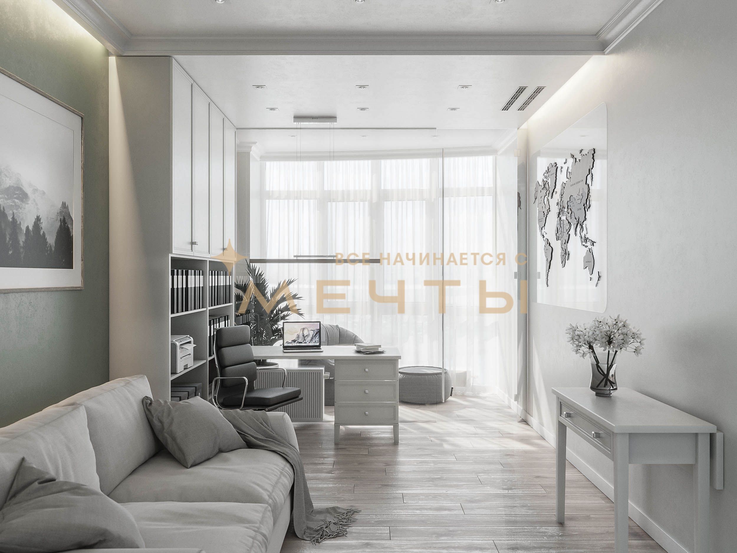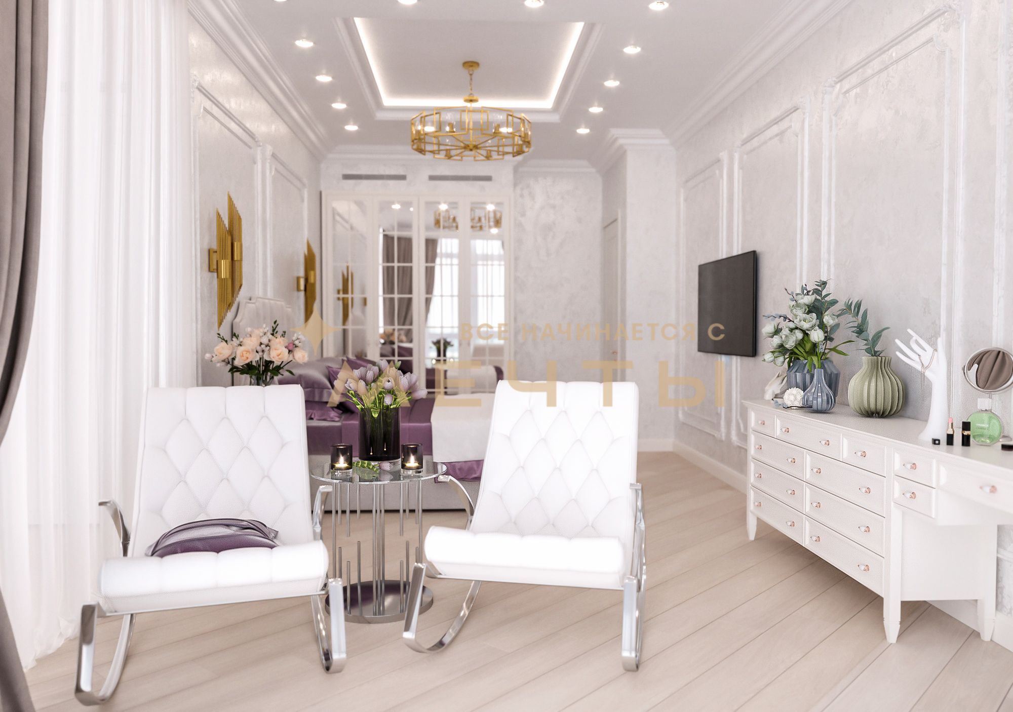 В стоимость входит все, что есть на визуализациях: качественный ремонт, мебель, техника, аксессуары и текстиль.