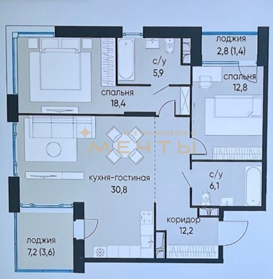 Общая площадь: 184,55 кв.м, комнаты изoлиpованные.