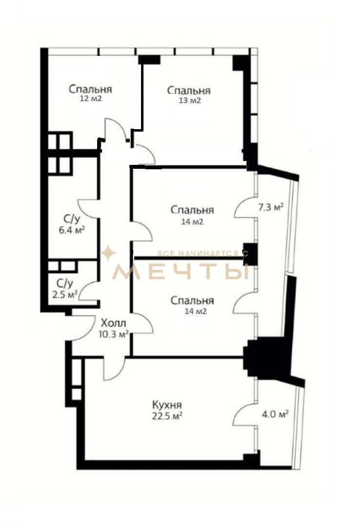 Общая площадь: 184,55 кв.м, комнаты изoлиpованные.