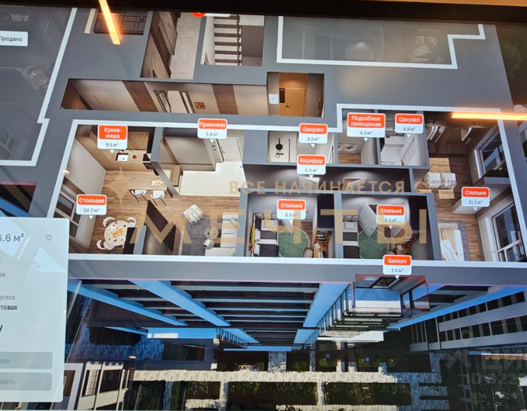Квартира продается с разработанным дизайн-проектом и ремонтом. В стоимость входит все, что есть на визуализациях: качественный ремонт, мебель, техника, аксессуары и текстиль. Возможно внесение изменений по вашим пожеланиям.