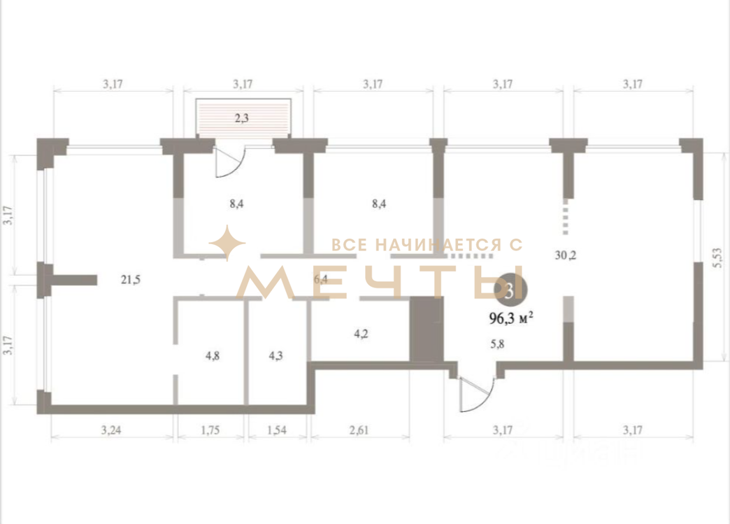 Общая площадь: 184,55 кв.м, комнаты изoлиpованные.
