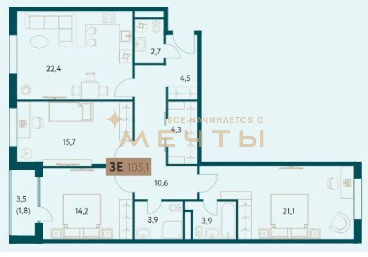 Квартира продается с разработанным дизайн-проектом и ремонтом. В стоимость входит все, что есть на визуализациях: качественный ремонт, мебель, техника, аксессуары и текстиль. Возможно внесение изменений по вашим пожеланиям.