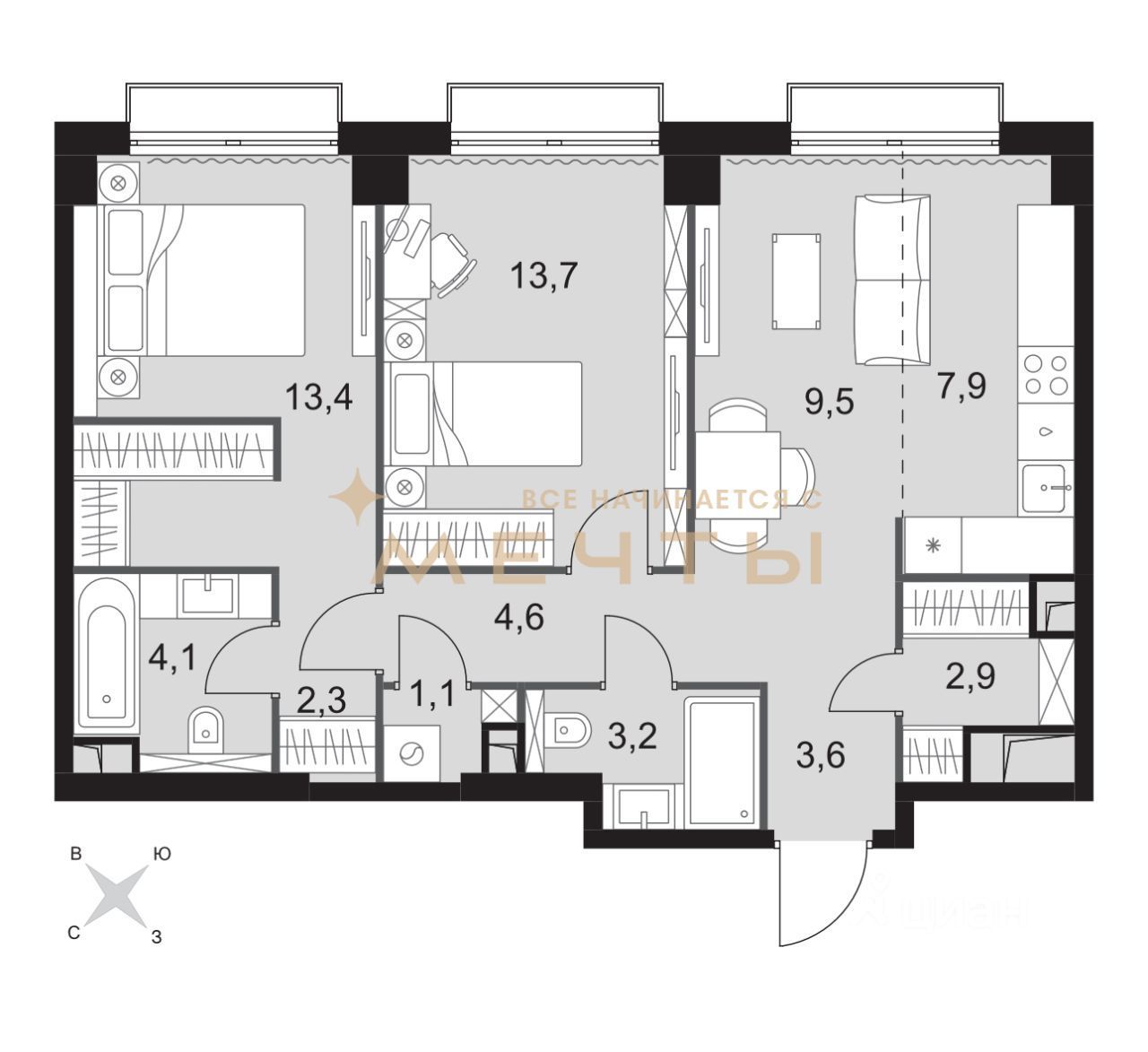 Объявление о продаже квартиры в ЖК «Sydney City (Сидней Сити)» Объект: 2‑комнатная квартира: -Общая площадь: 66,3 м -Жилая площадь: 27,1 м -Площадь кухни: 17,4 м -Высота потолков: 3 м. -Санузел: 2 совмещённых. Расположение: -ЖК «Sydney City (Сидней Сити)»; -район Хорошёво‑Мнёвники (СЗАО, Москва); -ближайшая станция метро — «Шелепиха» (4 мин), также рядом «Народное Ополчение» (5 мин) и «Хорошёвская» (6 мин). -Этаж: 28 из 43. -Год сдачи дома: 2025. -Статус дома: не сдан. -Отделка: без отделки. -Тип жилья: новостройка. Дополнительные преимущества: -видовая квартира (панорамные виды); -подземная парковка; -высота потолков 3 м создаёт ощущение простора; -расположение на берегу Москвы‑реки с прямым выходом на набережную. Условия сделки: -продаётся по переуступке права требования; -возможна уступка права рассрочки до конца 2026 года на выгодных условиях от ФСК; -минимальные ежемесячные платежи; -возможна ипотека. Звоните и записывайтесь на просмотр квартиры вашей мечты!