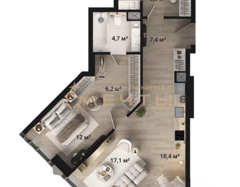 В стоимость входит все, что есть на визуализациях: качественный ремонт, мебель, техника, аксессуары и текстиль.