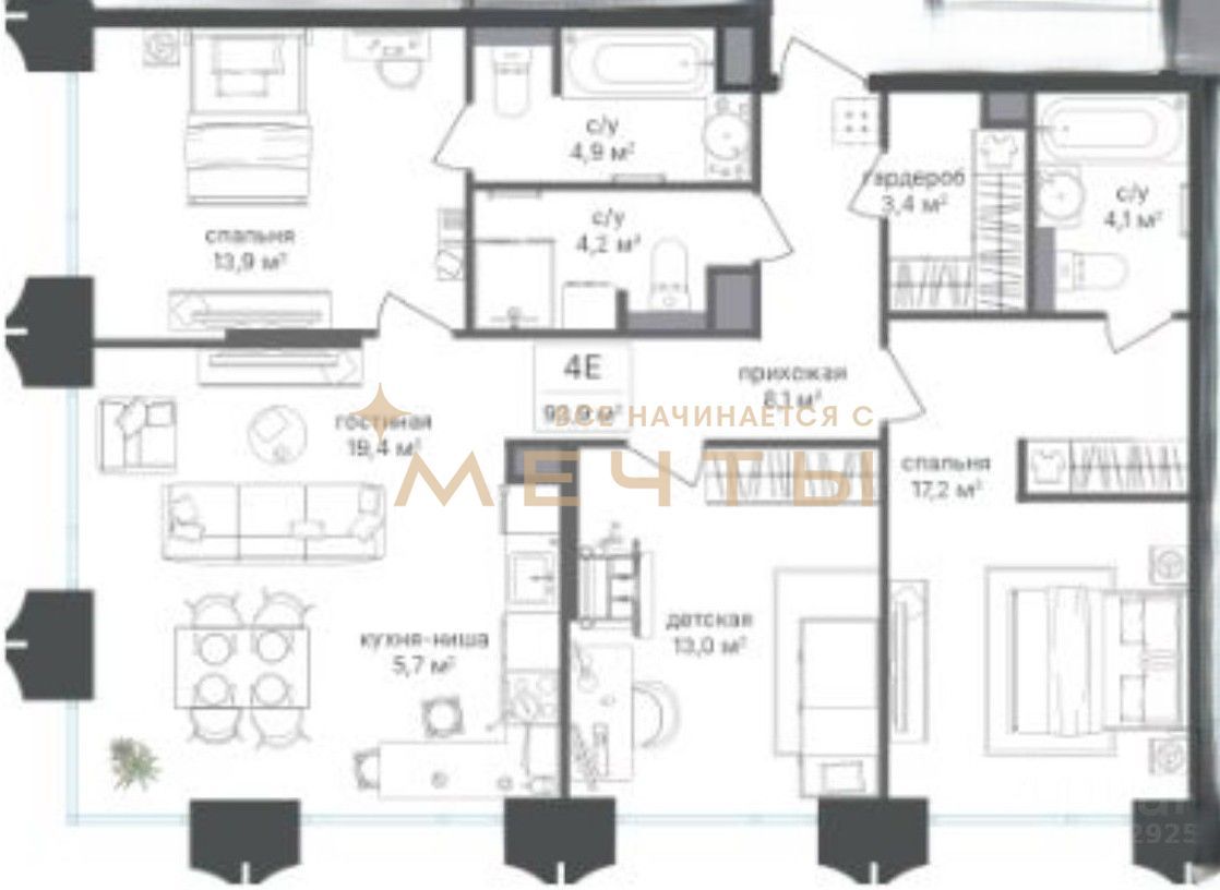 Квартира продается с разработанным дизайн-проектом и ремонтом. В стоимость входит все, что есть на визуализациях: качественный ремонт, мебель, техника, аксессуары и текстиль. Возможно внесение изменений по вашим пожеланиям.