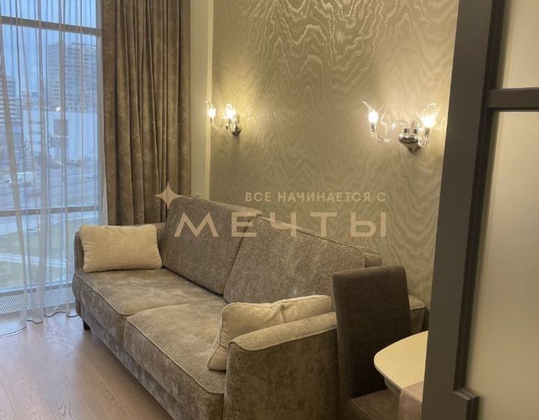 Предлагается дизайнерская квартира в центре Москвы с видом на реку и комплекс “Москва-Сити”. Квартира расположена на 30 этаже и включает кухню-гостиную, детскую комнату, две ванные комнаты, гардеробную, а также мастер-спальню с собственным санузлом и шикарной гардеробной площадью 13 м². Дизайн интерьера выполнен в спокойном классическом стиле с использованием натуральных материалов — камня и дерева. Во всех помещениях установлены разнообразные подсветки, люстры, точечные светильники и бра, что создает атмосферу уюта. Большое количество окон наполняет квартиру естественным светом.
