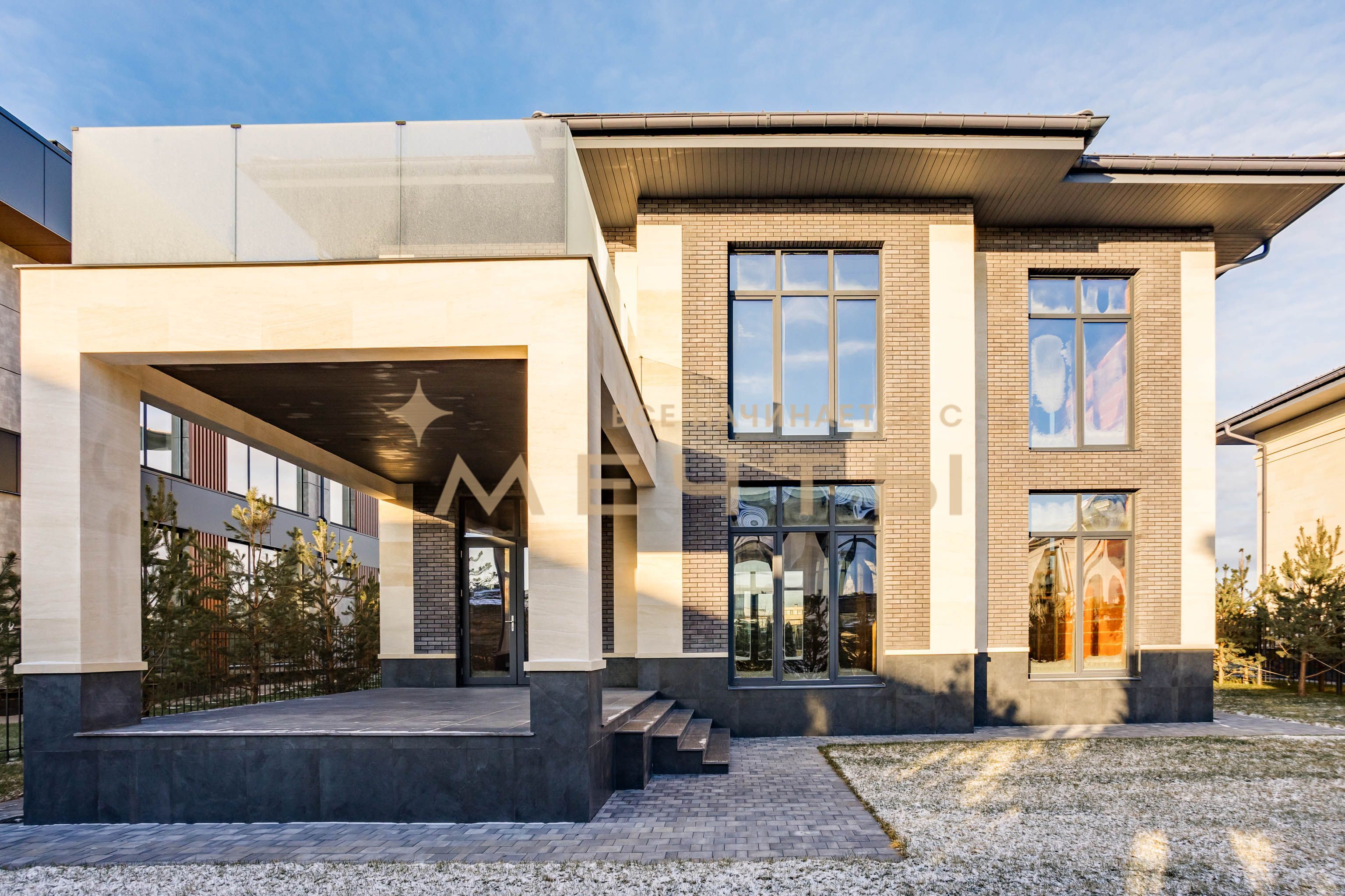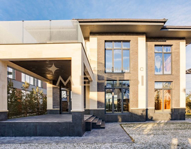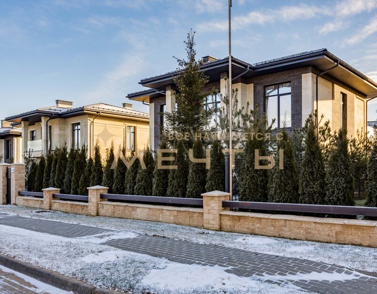 ID 1330 Предлагаем купить отличный современный дом в премиальном коттеджном поселке Millenium Park в 20 км от МКАД по Новорижскому шоссе. Дом построен в стиле Райта. Площадь дома 307 кв. м., высота потолков 3.4 м, панорамное остекление. Участок правильной прямоугольной формы, площадью 8.3 сотки. Участок расположен в 8-м квартале, в приватной части новой очереди поселка. В доме два уровня. Планировка максимально функциональная и соответствует современным требованиям в строительстве загородных объектов. Дом построен из крупноформатных блоков Protherm 51, перекрытия – ж/б плиты, внутренние несущие стены выполнены из полнотелого кирпича. Участок ухоженный, высажен газон.