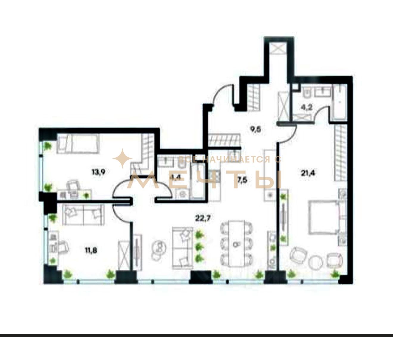 Квартира продается с разработанным дизайн-проектом и ремонтом. В стоимость входит все, что есть на визуализациях: качественный ремонт, мебель, техника, аксессуары и текстиль. Возможно внесение изменений по вашим пожеланиям.