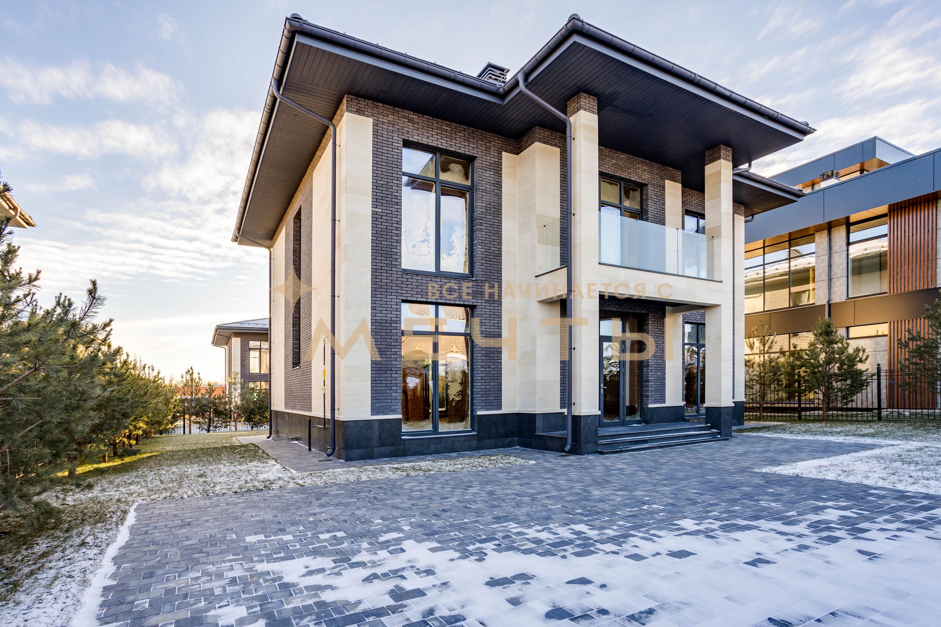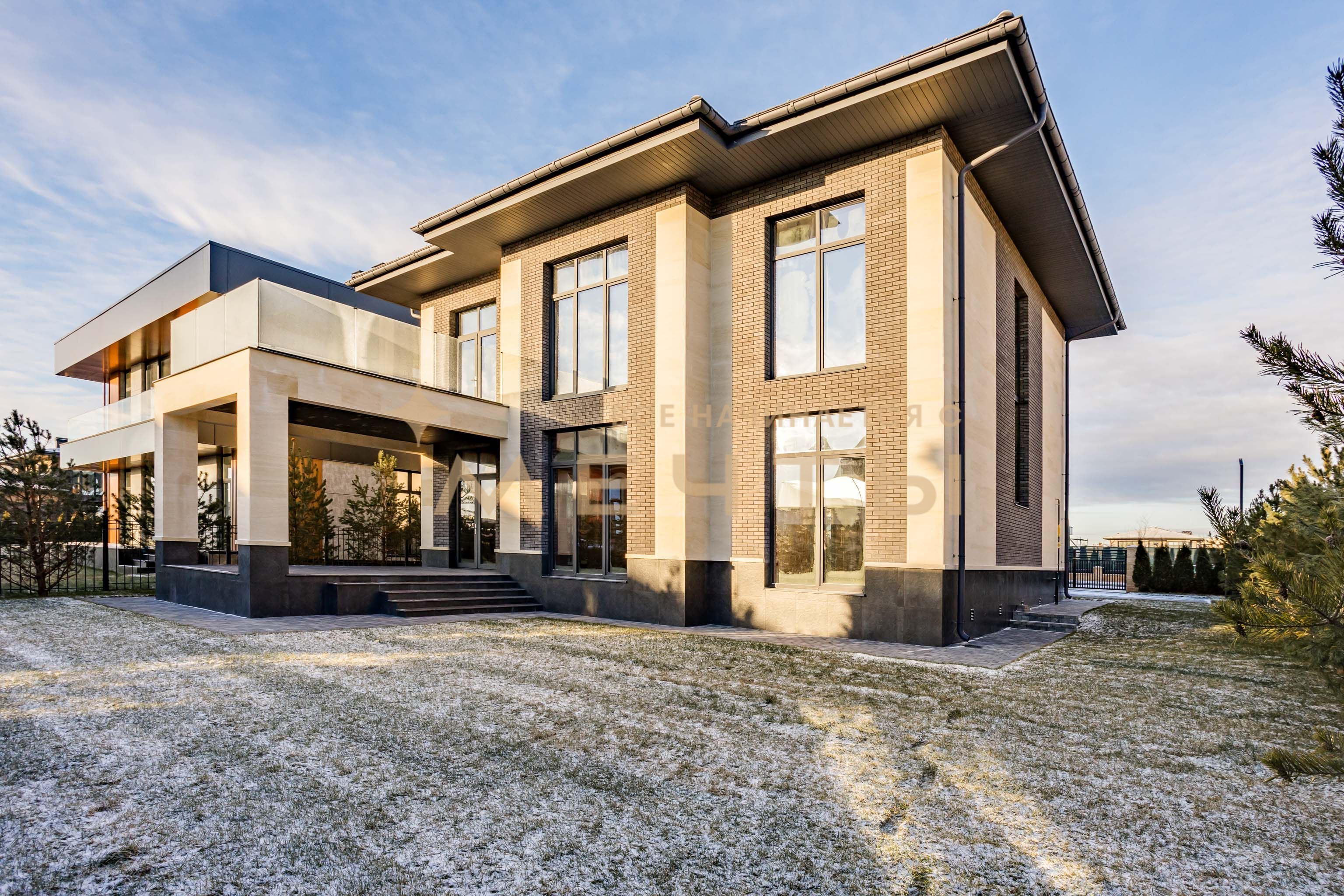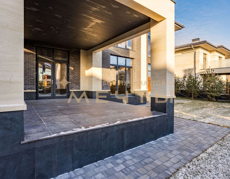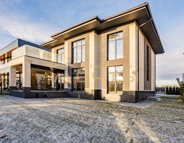 ID 1336 Дом построен в стиле Райта. Площадь дома 315 кв. м., высота потолков 3.4 м, панорамное остекление. Участок правильной прямоугольной формы, площадью 8.3 сотки. Участок расположен в 8-м квартале, в приватной части новой очереди поселка. В доме два уровня. Планировка максимально функциональная и соответствует современным требованиям в строительстве загородных объектов. Дом построен из крупноформатных блоков Protherm 51, перекрытия – ж/б плиты, внутренние несущие стены выполнены из полнотелого кирпича. Участок ухоженный, высажен газон.