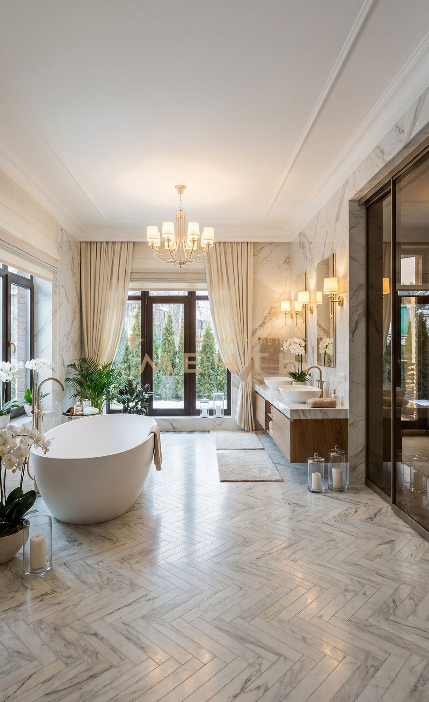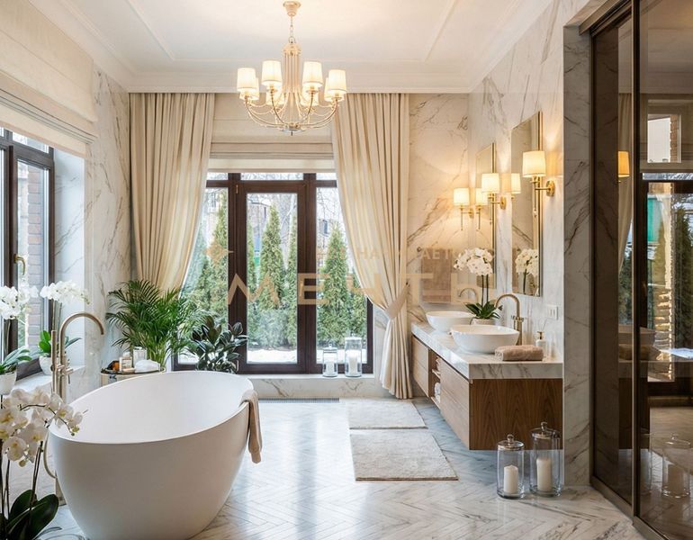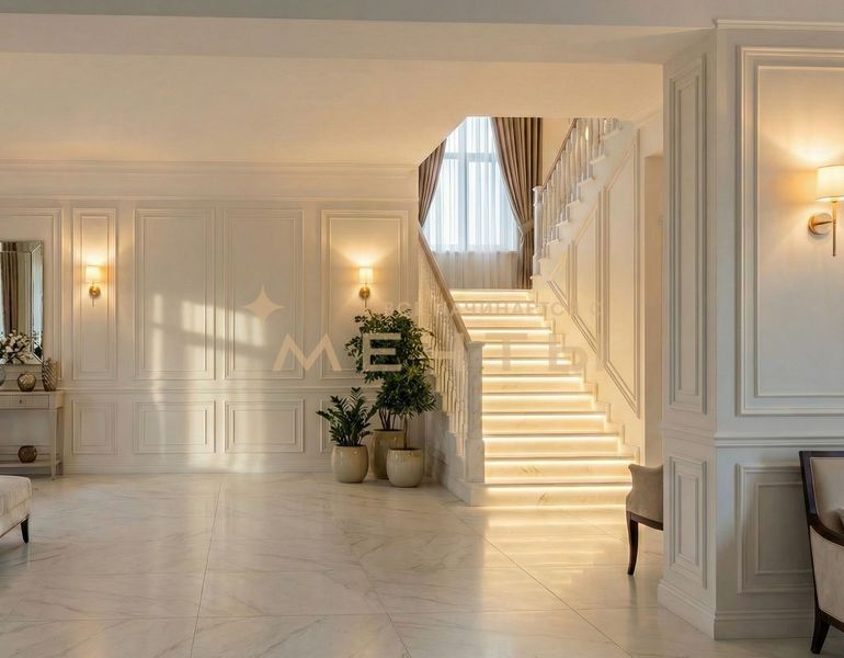 Предлагается дизайнерская квартира в центре Москвы с видом на реку и комплекс “Москва-Сити”. Квартира расположена на 30 этаже и включает кухню-гостиную, детскую комнату, две ванные комнаты, гардеробную, а также мастер-спальню с собственным санузлом и шикарной гардеробной площадью 13 м². Дизайн интерьера выполнен в спокойном классическом стиле с использованием натуральных материалов — камня и дерева. Во всех помещениях установлены разнообразные подсветки, люстры, точечные светильники и бра, что создает атмосферу уюта. Большое количество окон наполняет квартиру естественным светом.