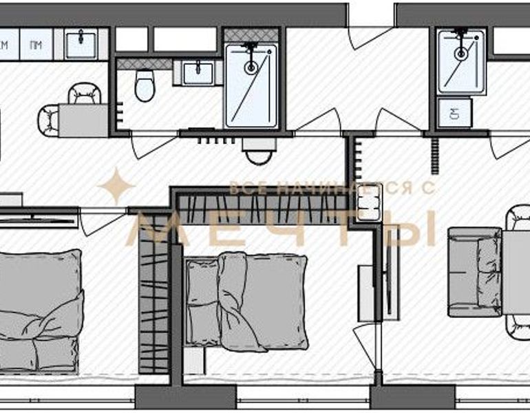 Квартира продается с разработанным дизайн-проектом и ремонтом. В стоимость входит все, что есть на визуализациях: качественный ремонт, мебель, техника, аксессуары и текстиль. Возможно внесение изменений по вашим пожеланиям.
