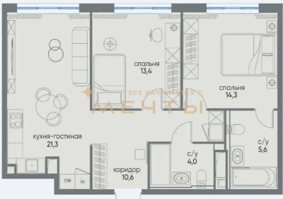 Квартира продается с разработанным дизайн-проектом и ремонтом. В стоимость входит все, что есть на визуализациях: качественный ремонт, мебель, техника, аксессуары и текстиль. Возможно внесение изменений по вашим пожеланиям.