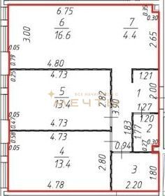 Общая площадь: 184,55 кв.м, комнаты изoлиpованные.