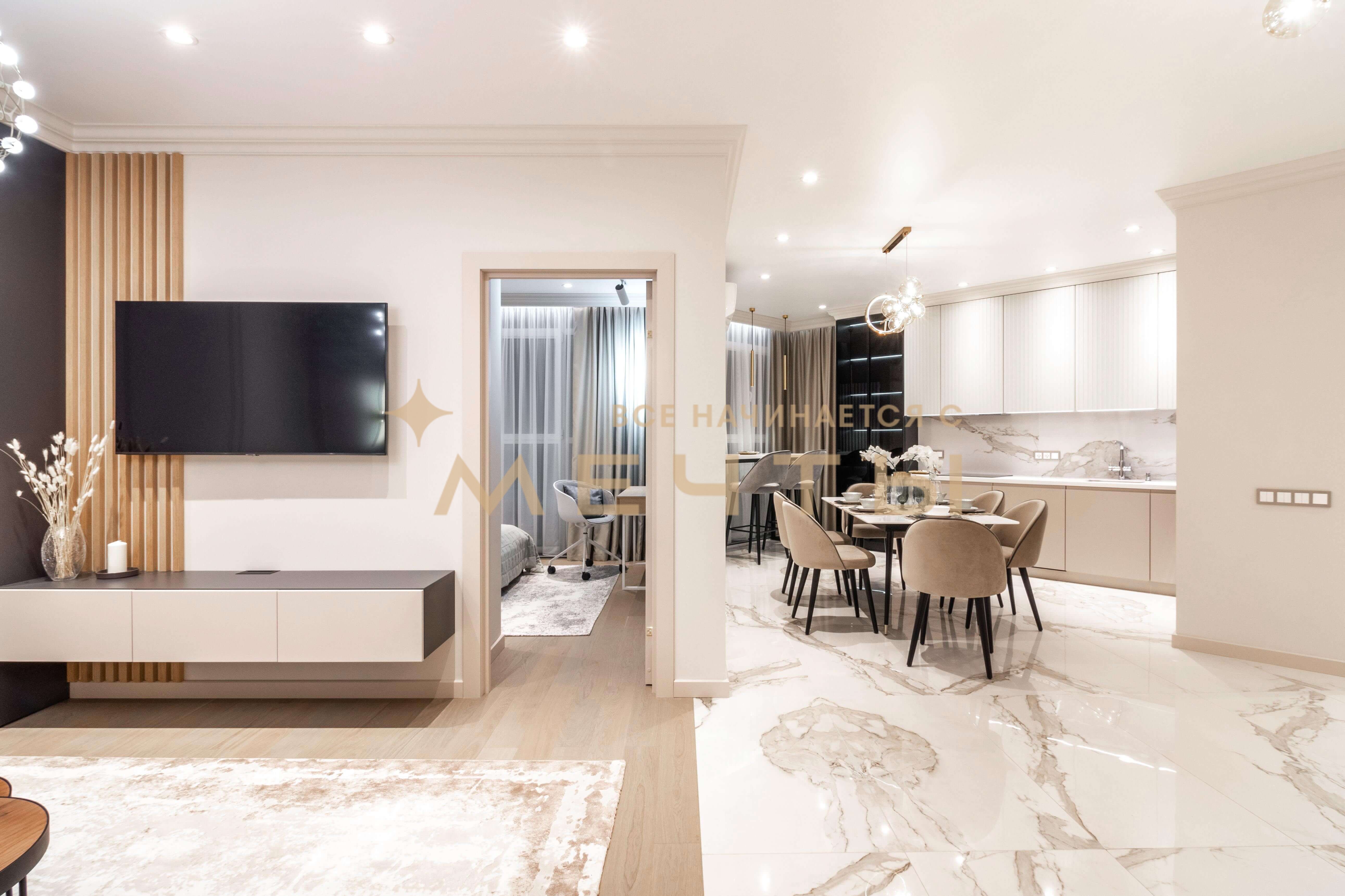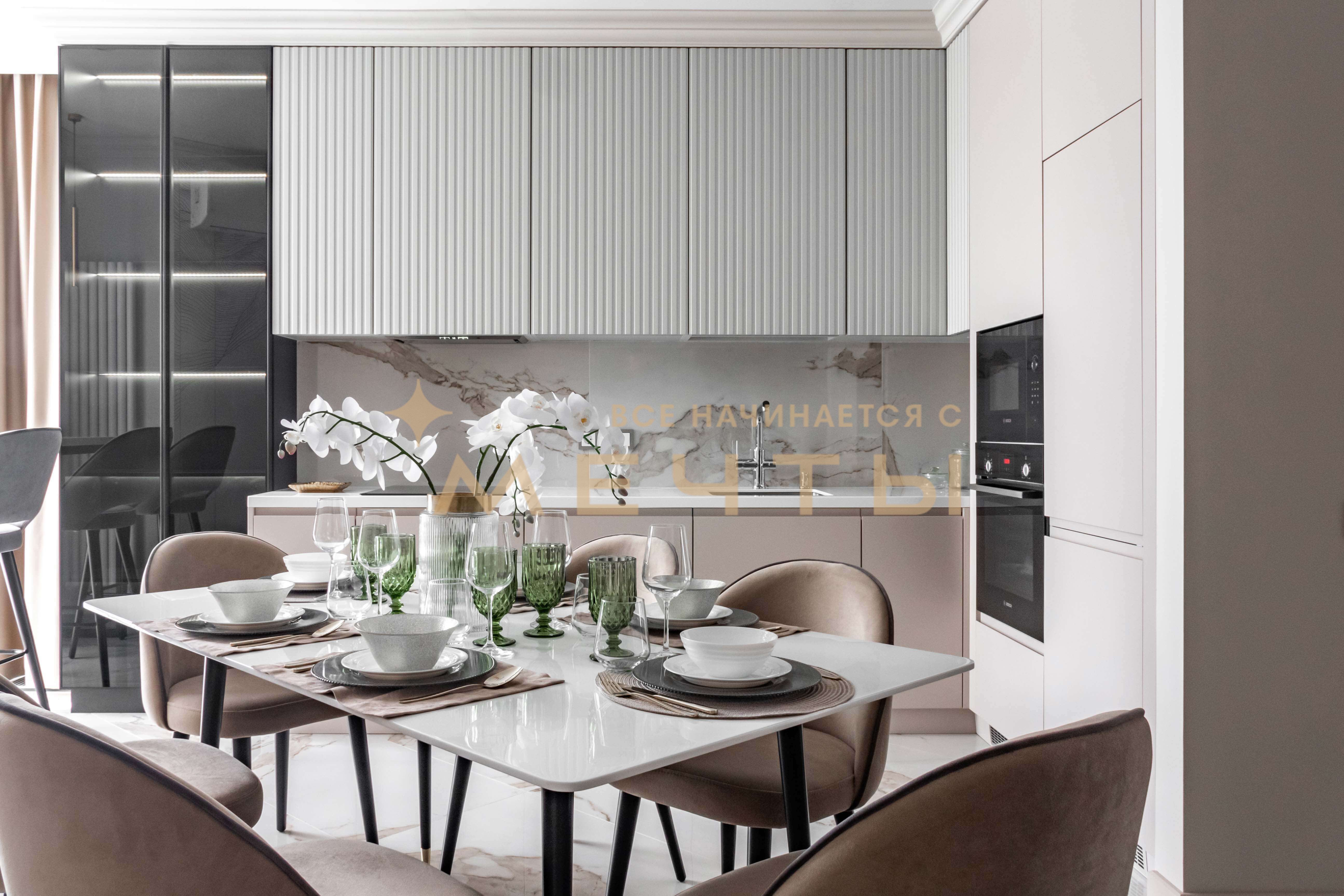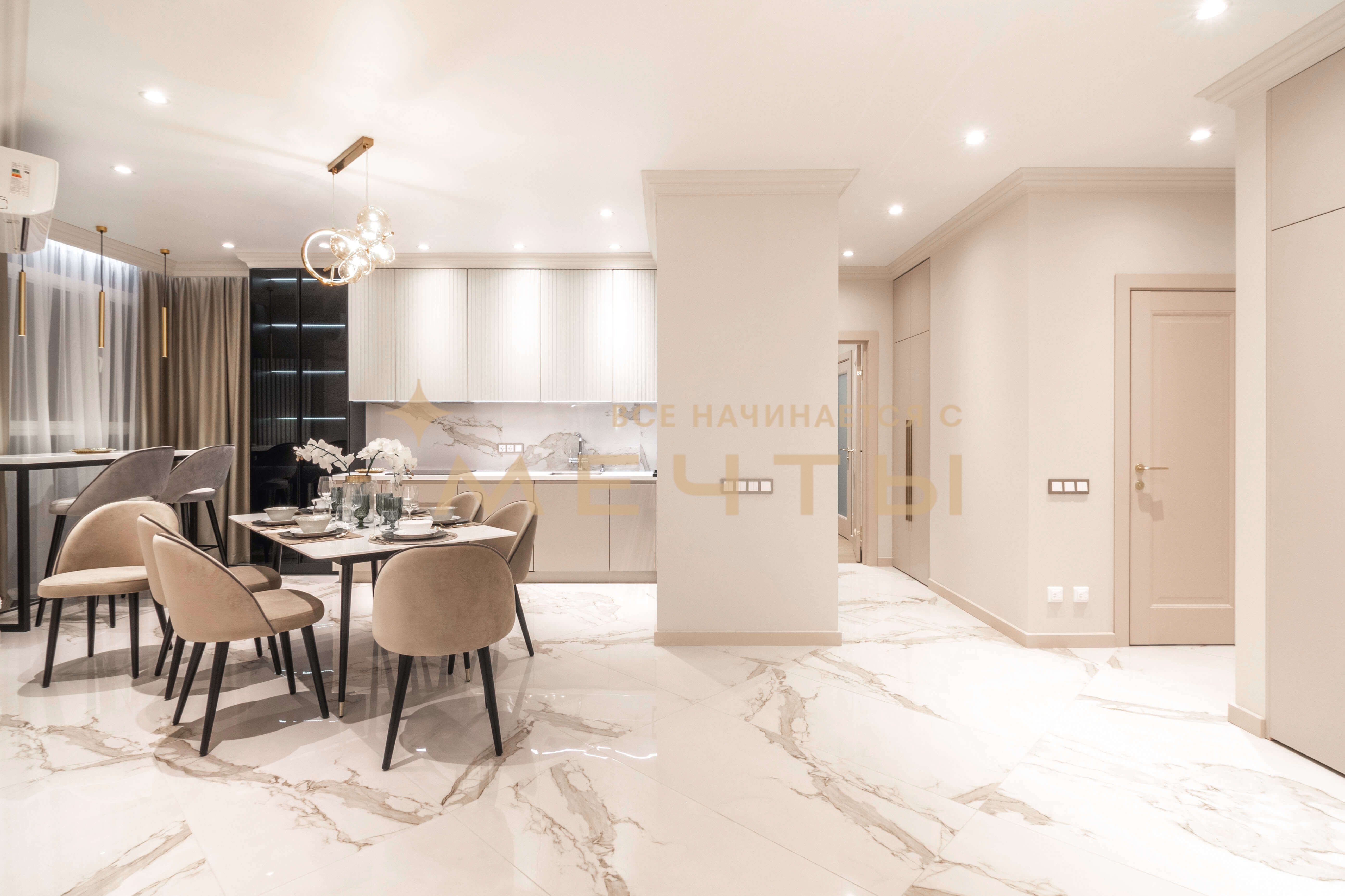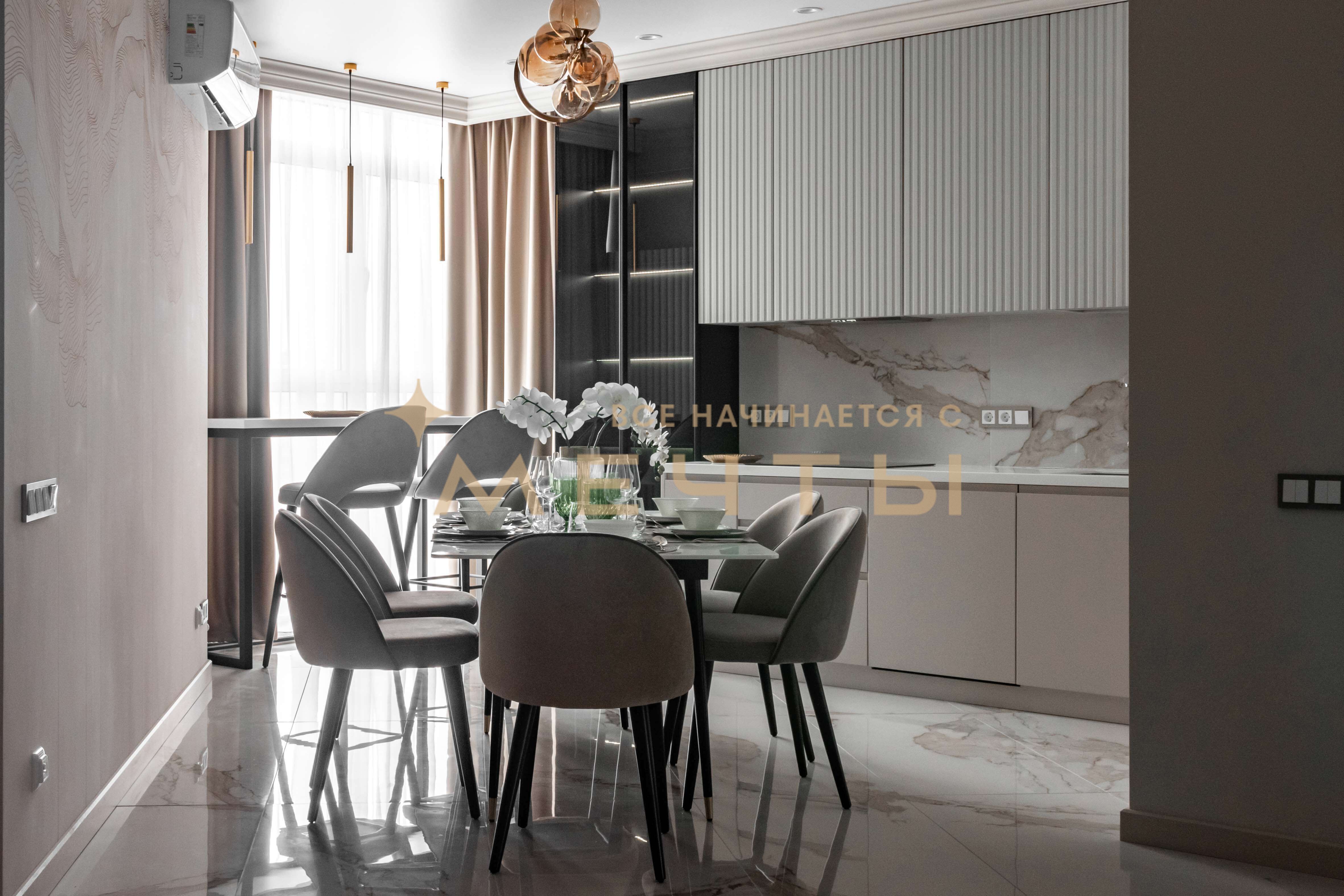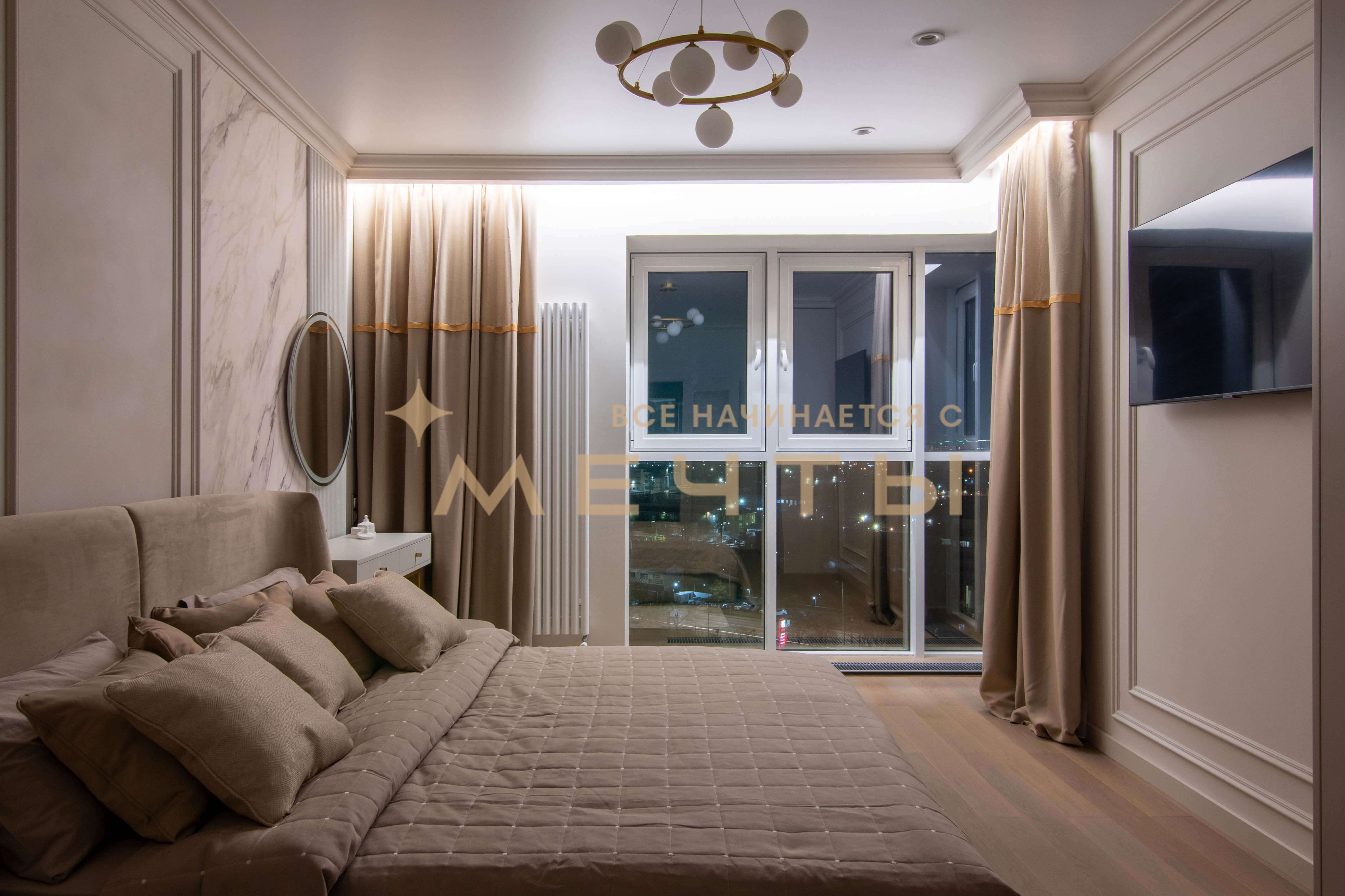 Наши дизайнеры создали роскошный интерьер евро 4-комнатной квартиры в центре Краснодара в стиле неоклассики. Особенностью этой квартиры является впечатляющая ванная комната в мастер-спальне, где установлена отдельностоящая ванна у окна, позволяющая наслаждаться панорамным видом на город. Квартира продается полностью готовой для проживания, включая мебель, бытовую технику, текстиль, аксессуары и декор.