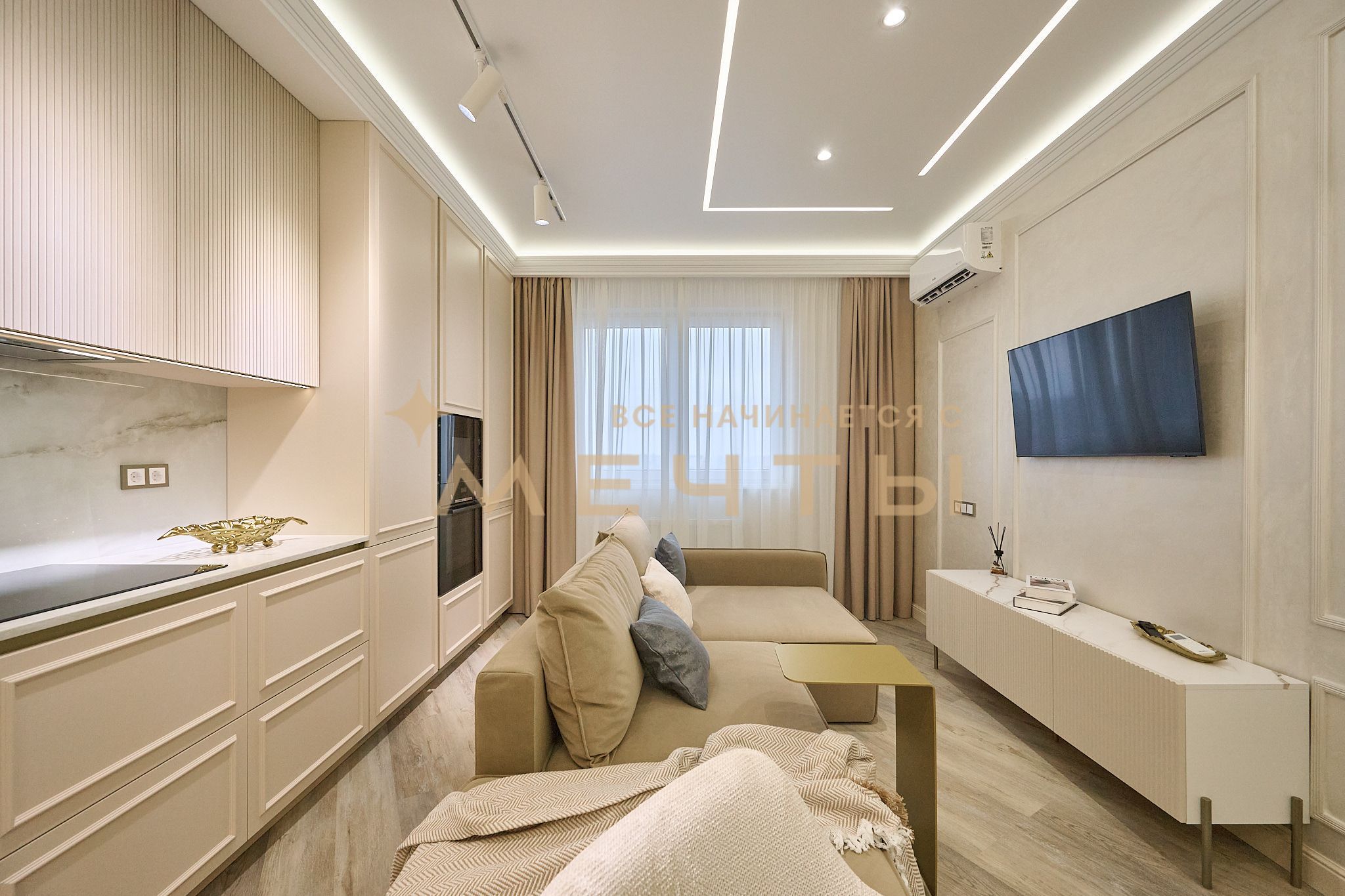 Предлагается видовая квартира с дизайнерским ремонтом в новом жилом комплексе бизнес-класса на берегу реки. В интерьере выполнен качественный ремонт с использованием натуральных материалов. Квартира укомплектована мебелью на заказ и встроенной бытовой техникой, предусмотрено множество мест для хранения. С любовью подобраны текстиль, аксессуары и предметы декора, учитывающие потребности будущего собственника. Развитая инфраструктура района включает фитнес-клубы, торговые центры, лучшую клинику в городе, супермаркеты и прогулочные зоны.