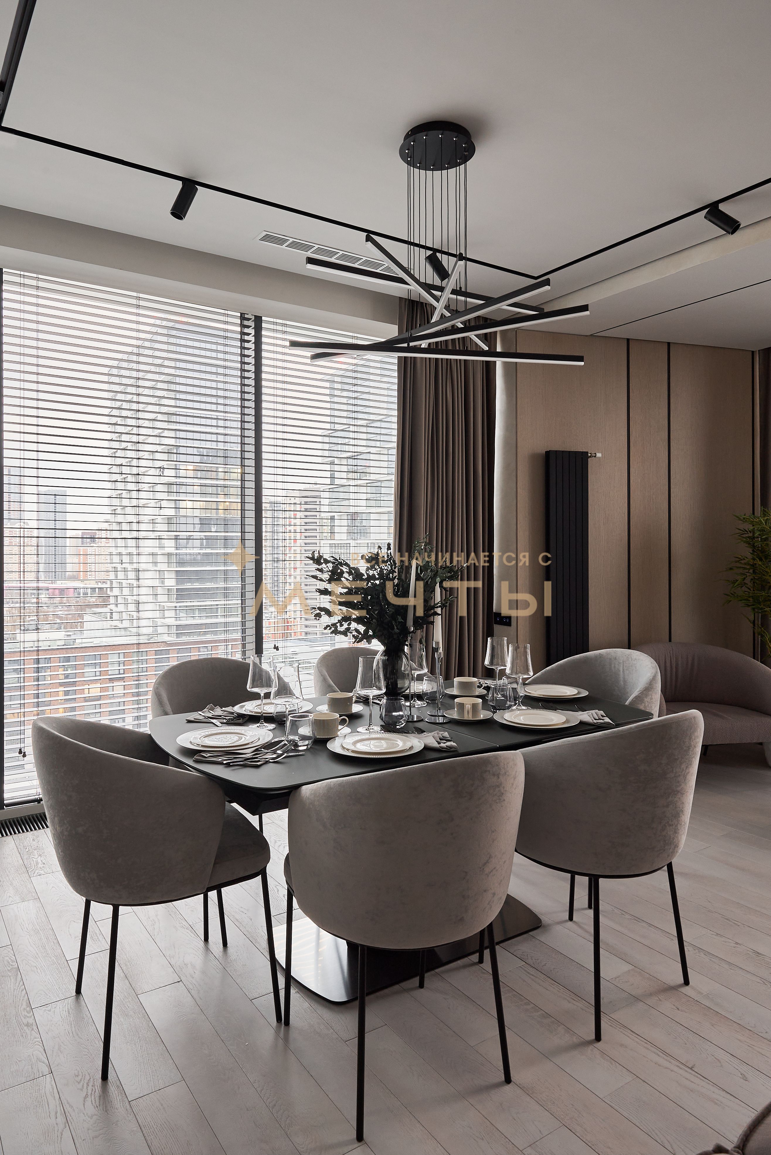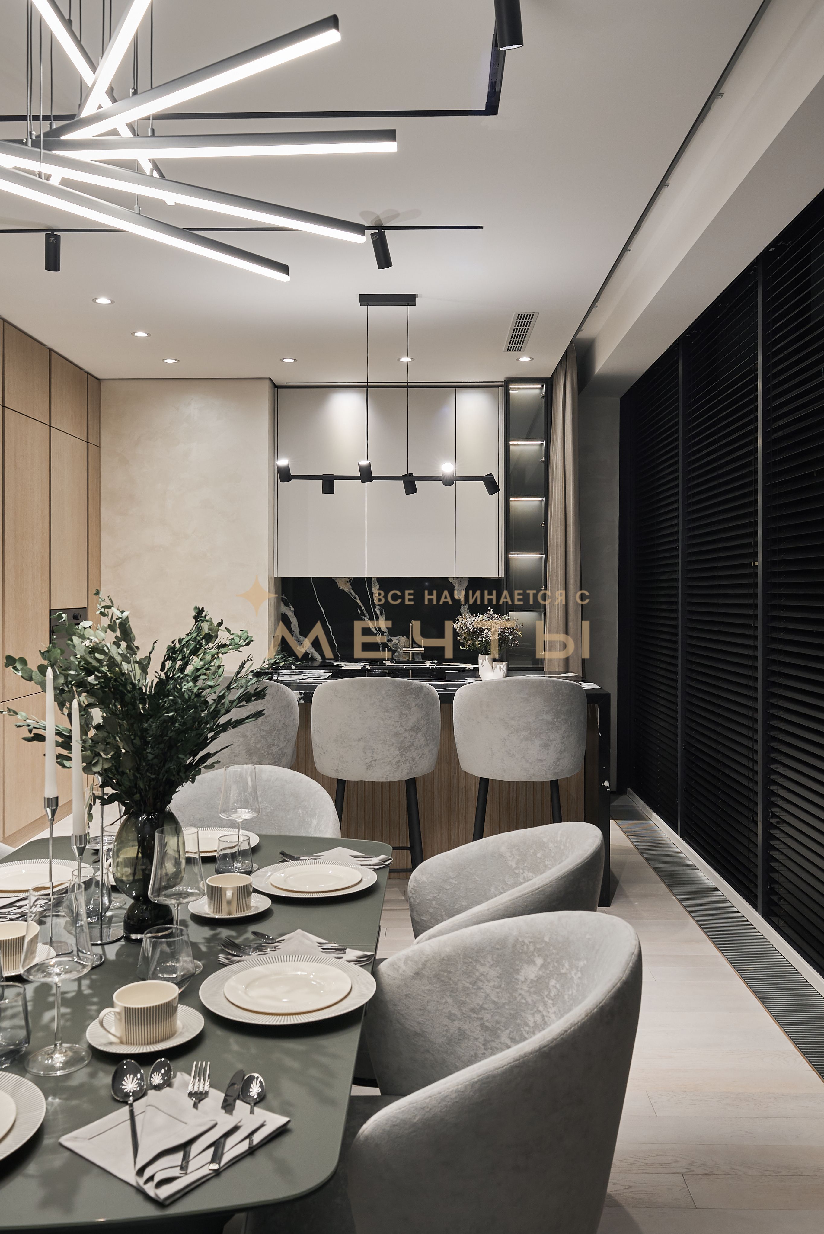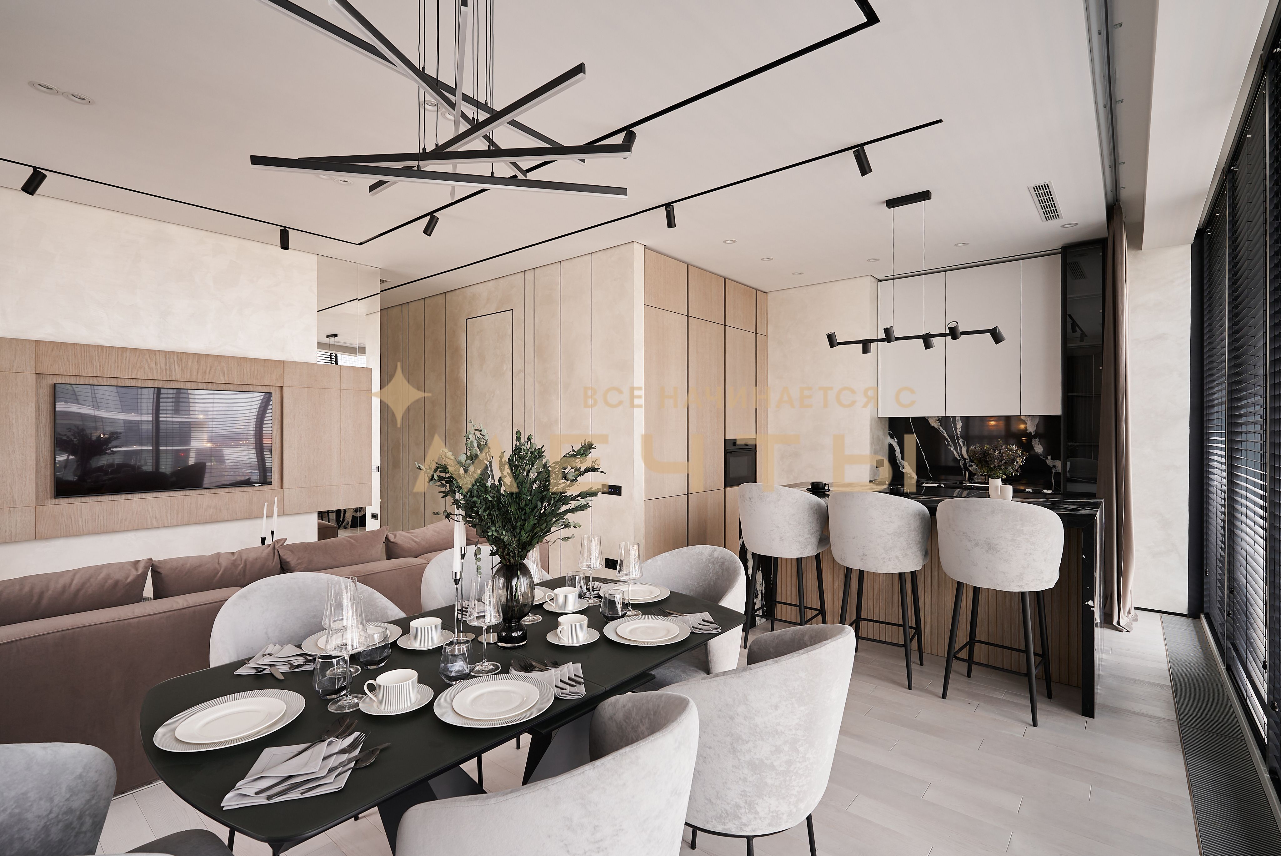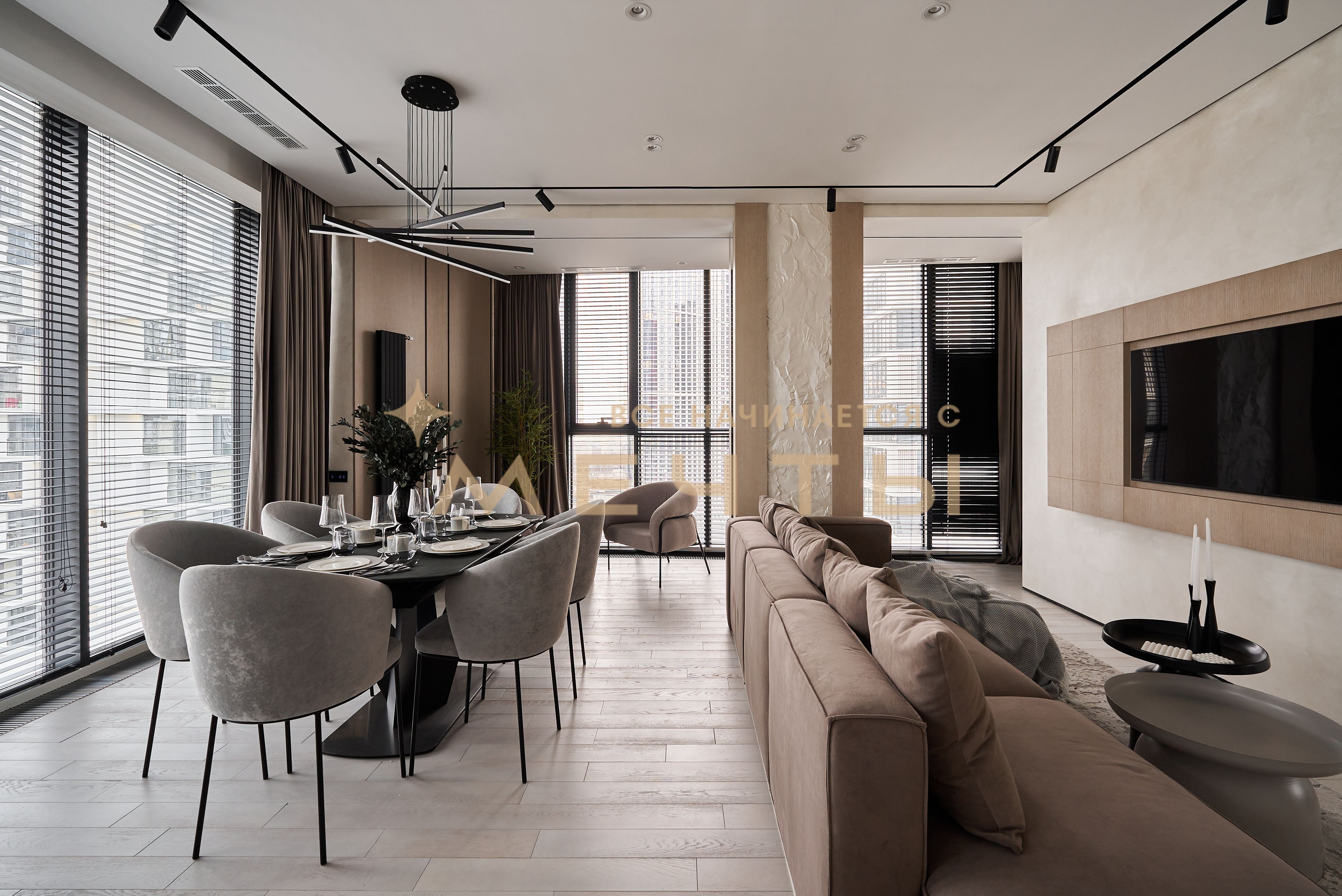 Евро-трехкомнатная квартира с дизайнерским ремонтом в стиле современная классика. Кухня-гостиная оснащена премиальной техникой: варочной панелью, духовым шкафом с функцией СВЧ, посудомоечной машиной, холодильником, винным шкафом, измельчителем пищевых отходов, фильтром для воды и домашним кинотеатром. Две изолированные спальни с выходом на лоджии, из панорамных окон которых открываются великолепные виды на город и парк “Событие”. Два совмещенных санузла с ванной и душевой кабиной. Также имеется хозяйственный блок и центральная система кондиционирования. В стоимость входит всё, что представлено на фото: качественный ремонт, мебель, техника, аксессуары и текстиль.